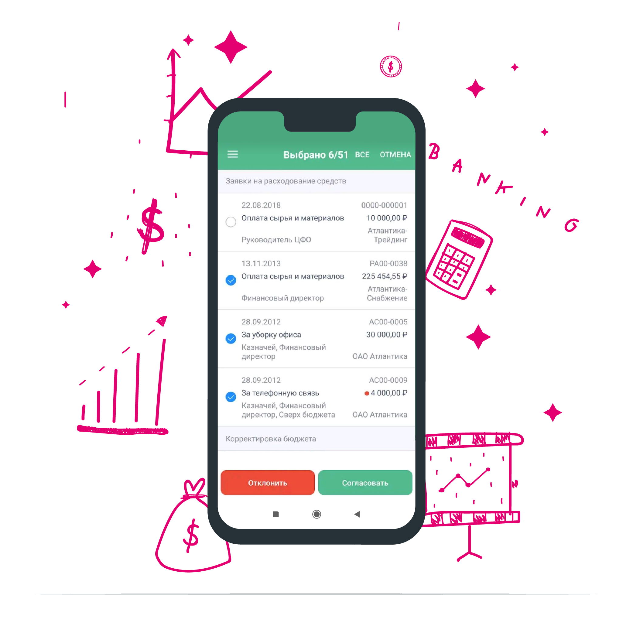 • Согласование платежей, в том числе многоуровневое согласование