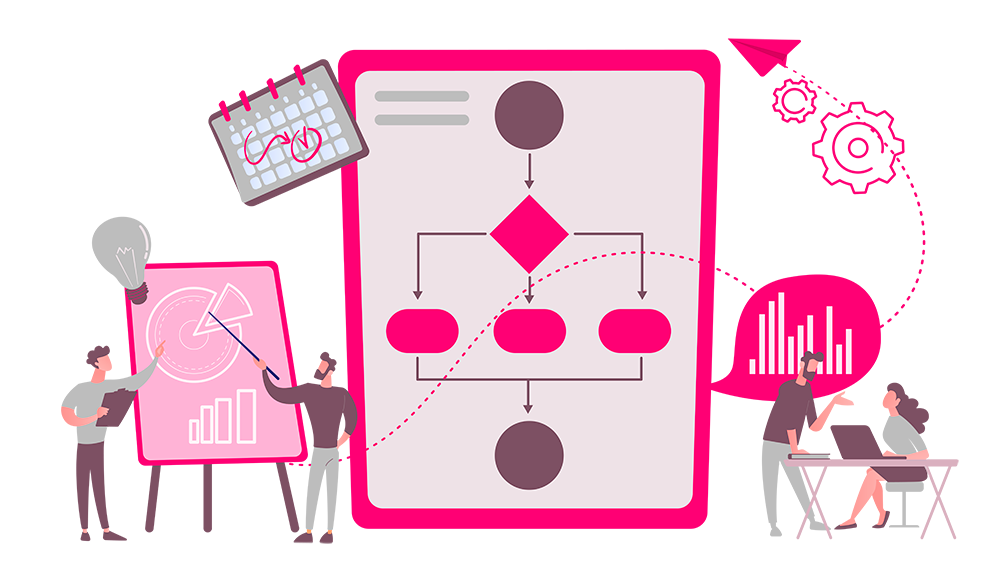 • моделирование — сравнение текущих бизнес-процессов с типовым функционалом решения